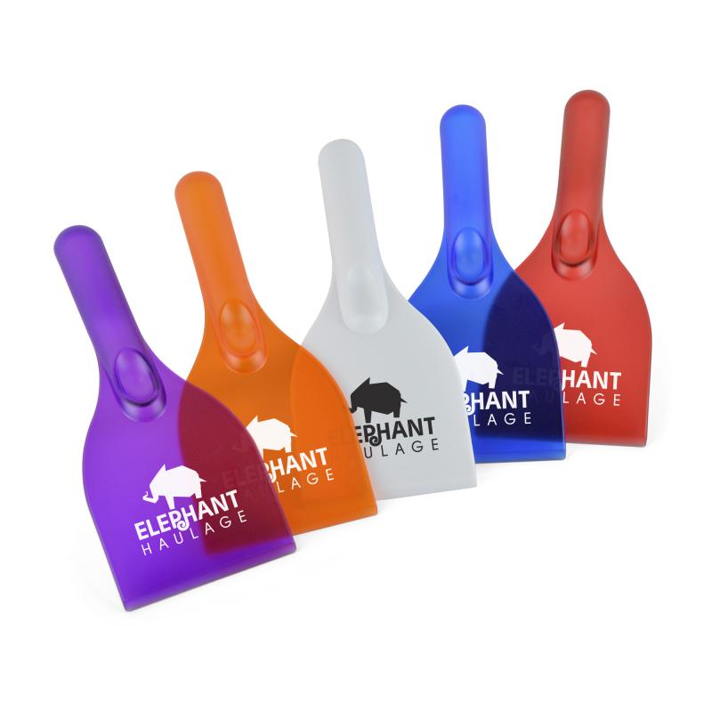 Sturdy plastic ice scraper with handle and thumb grip. With a practical design great branding area, make sure it's your brand that comes to the rescue on cold icy mornings. An extremely useful giveaway for all drivers.